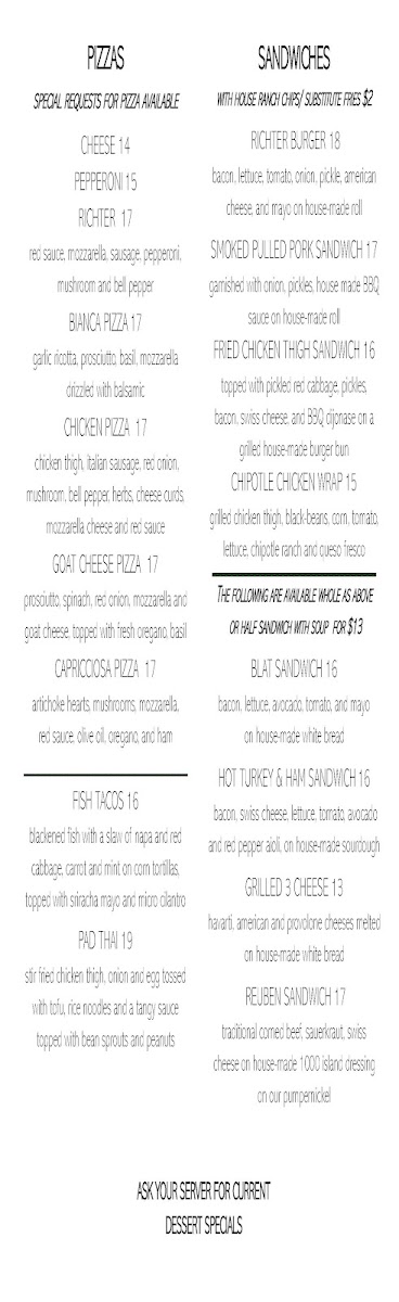 The menu is a delightful eclectic mix, featuring sumptuous sandwiches like the Richter Burger, complemented by fresh, locally inspired ingredients. Don’t miss the Hot Turkey & Ham Melt, bursting with flavors from bacon and red pepper aioli.